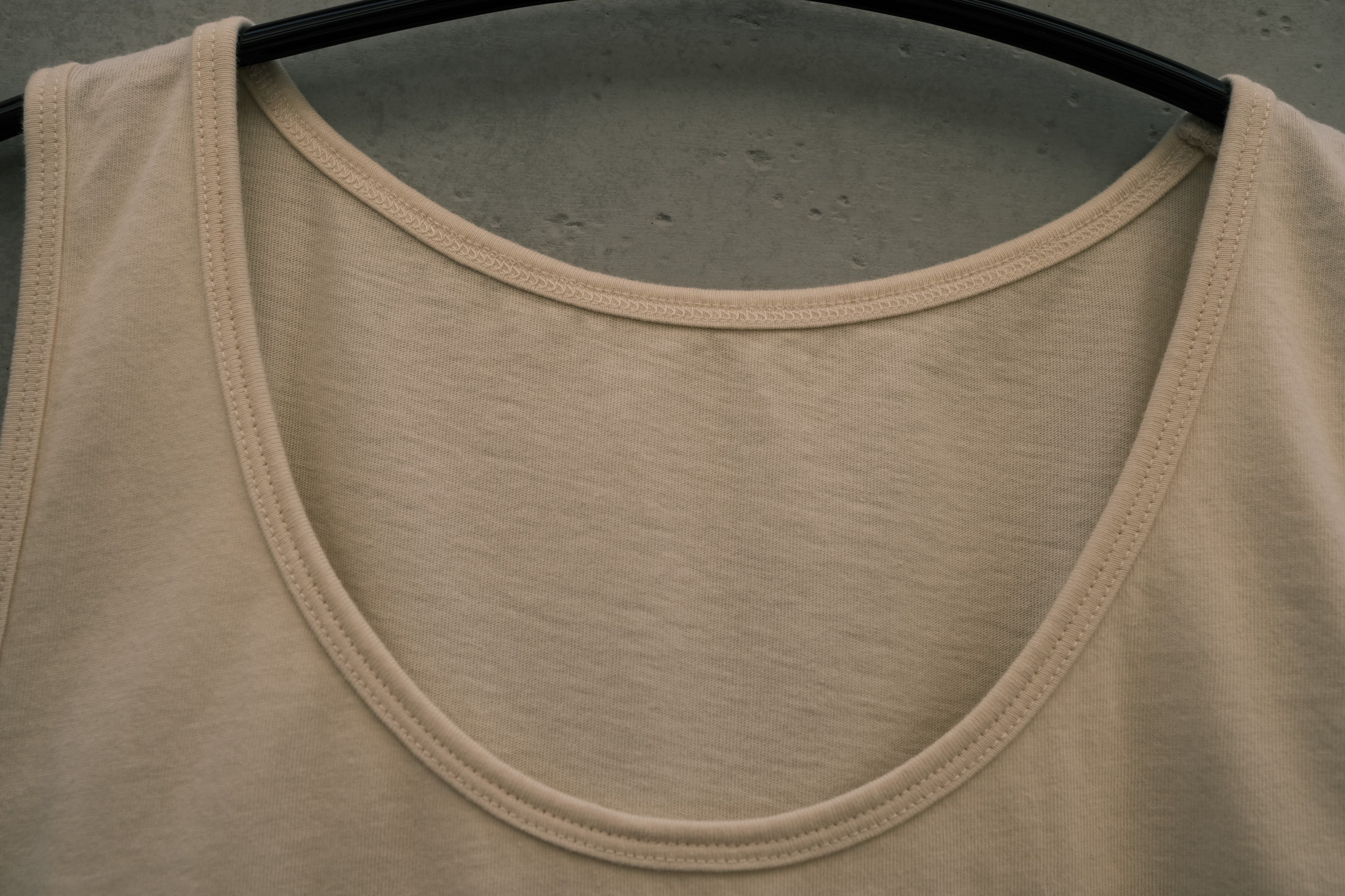 20番手の天竺オーガニックコットンを使用したアイテムで、ワンウォッシュを施し、縮みを防止。リブ編みのデザインが特徴で、ゆったりとしたシルエットは、インナーやレイヤーとして年間を通じて快適に着用できます。また、程よい厚さがあり、安心してお使いいただけます。裾には5cmのスリットが施されており、イン&アウトのスタイルを楽しむことができます。ナチュラルな色合いが柔らかな印象を与えてくれます。裾に5cmのスリットを入れることで、イン&アウトのシルエットが楽しめる。自然に綿100%の生地に相応しいナチュラル色で印象が和らげる。